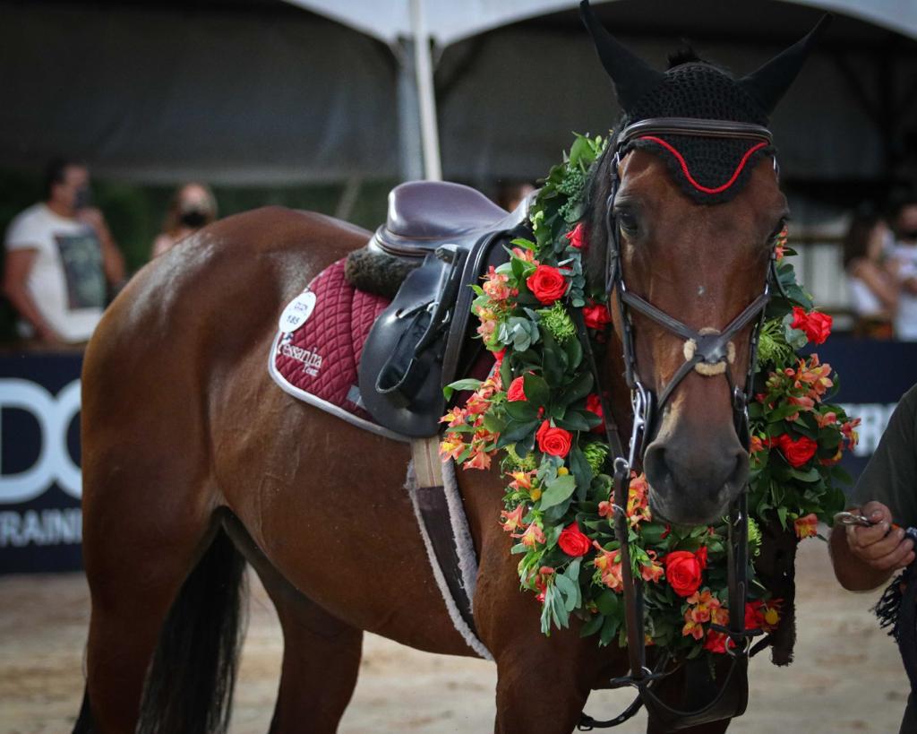 Mas nem um diretor de filme ou novela realizaria um final tão emocionante como o que aconteceu neste domingo (21/02), à noite, no DTC Grand Prix, a última e principal prova da primeira etapa do DTC Tour 2021, disputada no Doda Training Center, em Itatiba. Guardando segredo e informando apenas à direção da prova, o experiente cavaleiro Bruno Chaves Pessanha já tinha decidido aposentar a sua excelente égua Transwall Cerise de Muze, de 19 anos e muitas conquistas nas pistas. Assim, no final do Grande Prêmio, faria uma homenagem especial para ela não importando o resultado na competição.